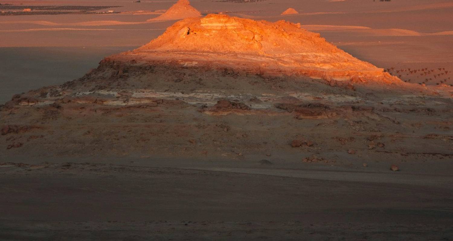 Today, we will visit the ruins of the temple of Alexander the Great, believed to be where the Greek conqueror passed through Bahariya while returning from the oracle of Ammon at Siwa Oasis. Visiting the Valley of the Golden Mummies, a huge burial site where around 250 mummies from different periods of Egyptian history were discovered. Time permitting, a visit to the English Mountain will take place by sunset. Here, the old English outpost was used by British troops as it showed strategic views of the area. Overnight at your hotel.